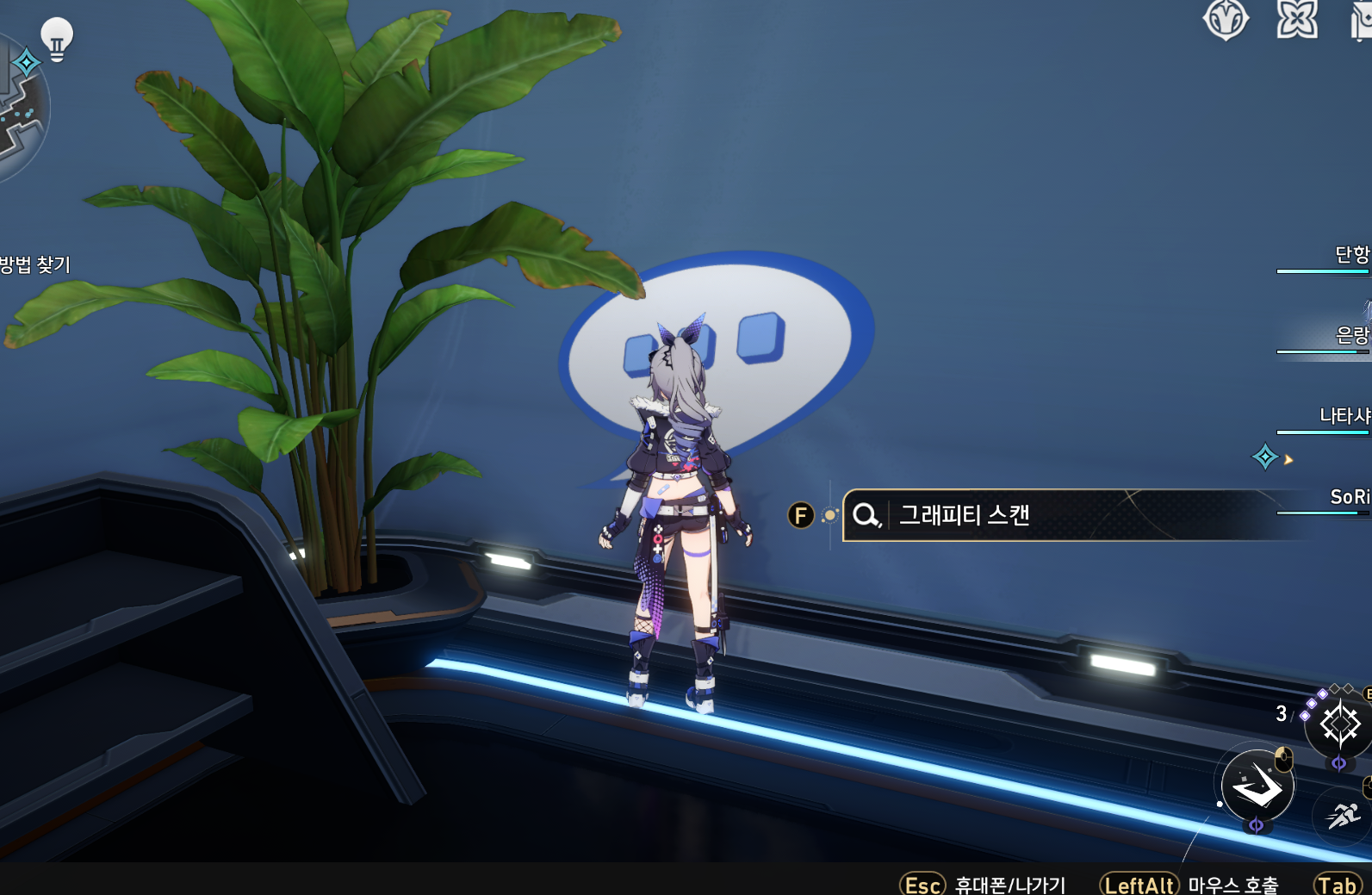 밖으로 나가면 중간 보스 처럼 생긴 놈이 나오는데, 주변 그래피티를 스캔해서 적을 약하게 만들 수 있습니다.