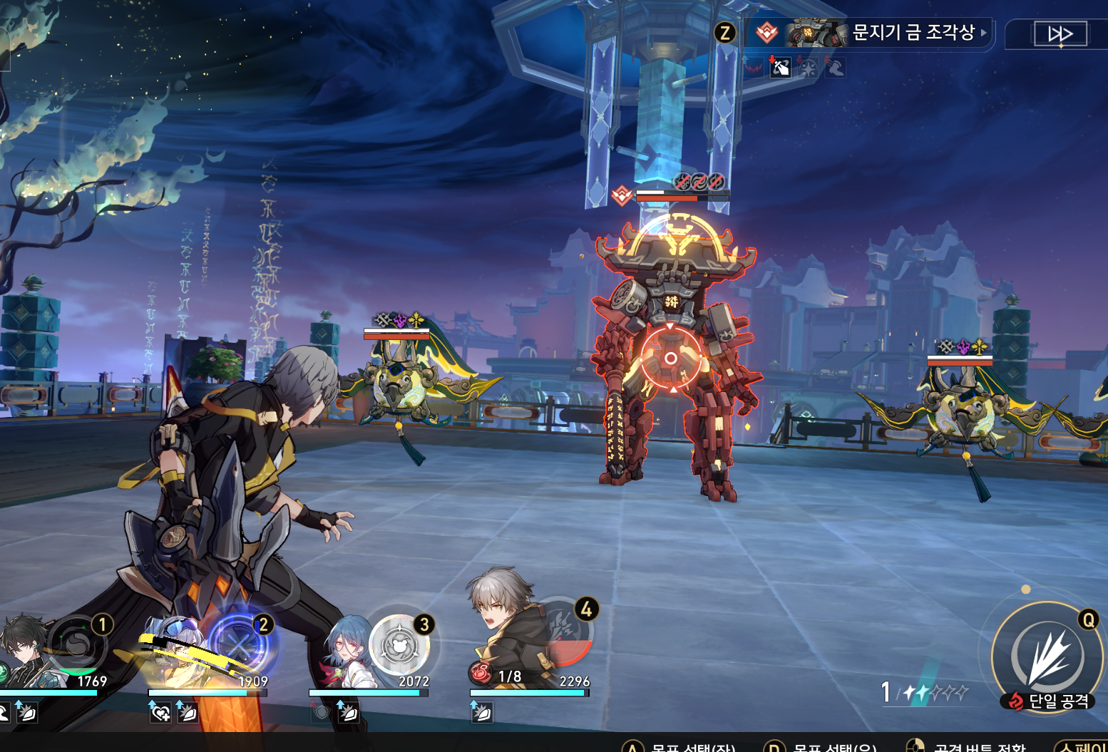 [공수사부]와 헤어지면 자동으로 전투가 버러지는 곳이 나오는데 보스급 로봇이 속박 기술을 써 아군을 상태불능으로 만들어 꽤나 귀찮으니, 주의하시고 이렇게 나타샤로 치료를 해주면 디버프가 제거됩니다. 로봇을 제거하고 조금만 직진하면 목적지에 다다르고 임무가 마감됩니다.