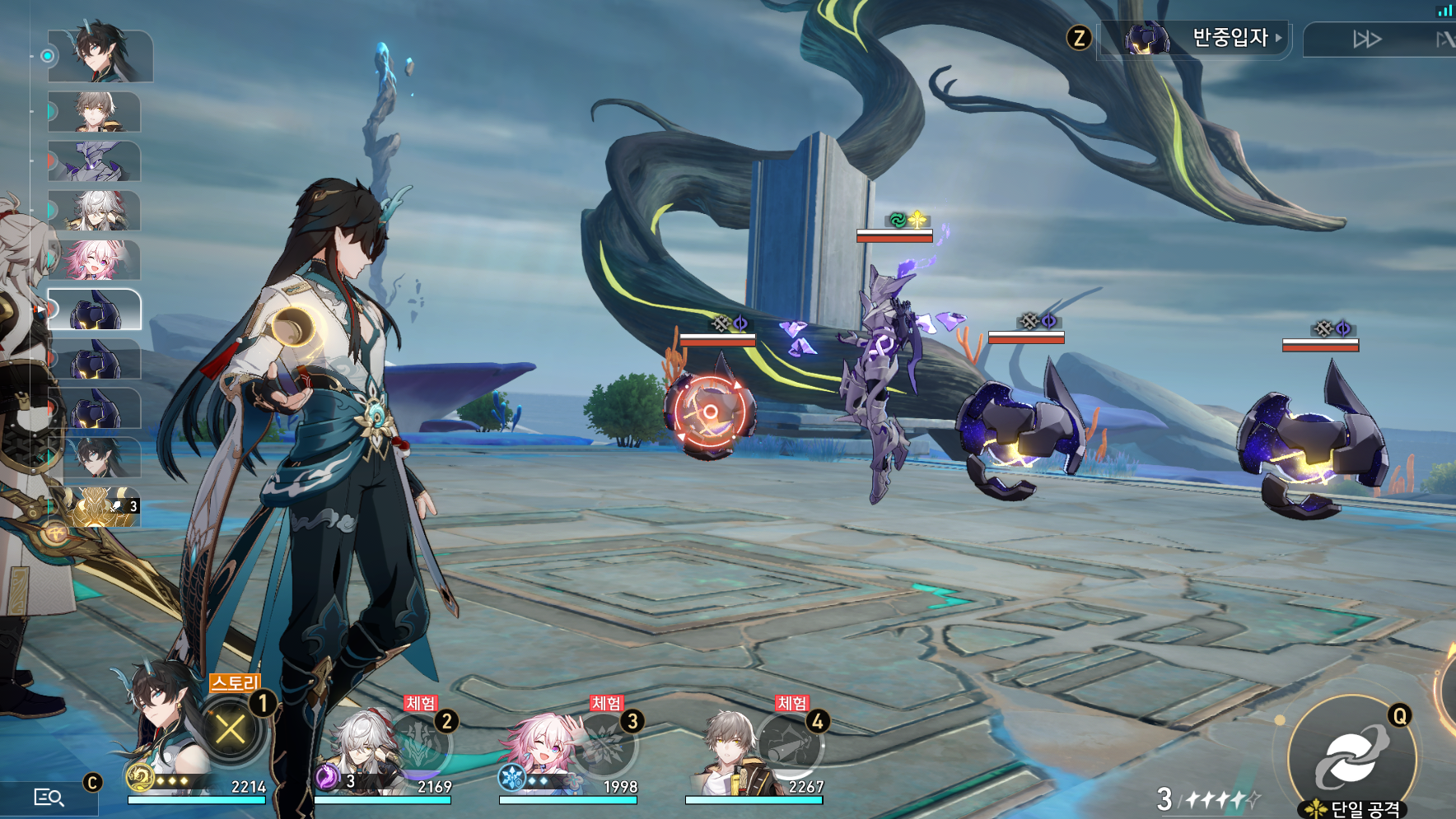 단항으로 정면에 목표지점으로 가면 주인공일행이 보이며, 조금 전 임무에서 치렀던 전투를 용존이 된 단항과 경원, 그리고 주인공(파멸), Mar 7th 이 추가되어 4명이서 또 한 번 치르게 됩니다. (이게 좀 말이 안 되는 게, 분명히 다른 캐릭터로 전투를 치렀는데, 무슨 멀티버스도 아니고 갑자기 경원과 단항이 추가되어 새로 전투를 치른다는 게, 스토리 몰입을 방해하는 것 같습니다.)