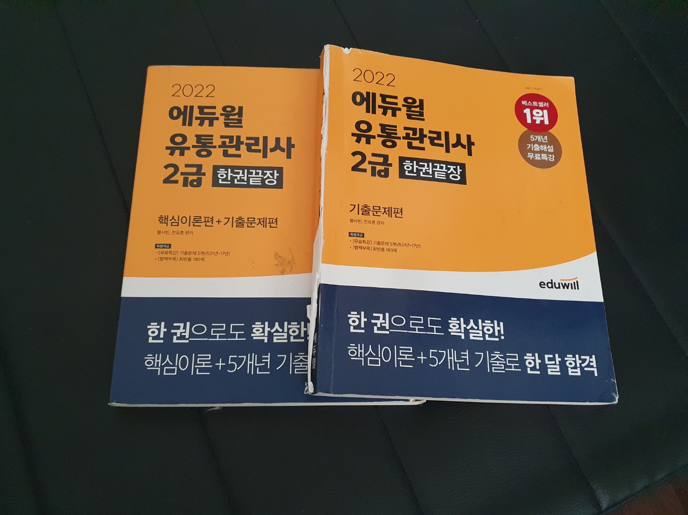책은 에듀윌에서 나온 유통관리사2급 책을 샀는데, 작년에 물류관리사를 합격하자마자 공부할 생각으로 샀다가 해외출장이 너무많아 작년에 시험을 포기했던터라 22년도 판을 가지고 공부했지만, 별다른 문제는 없었습니다. 다만 제가 가지고 있는 책은 21년도 기출까지만 있어, 22년도 기출은 에듀윌등에서 제가 따로 출력을해서 풀어보았습니다.