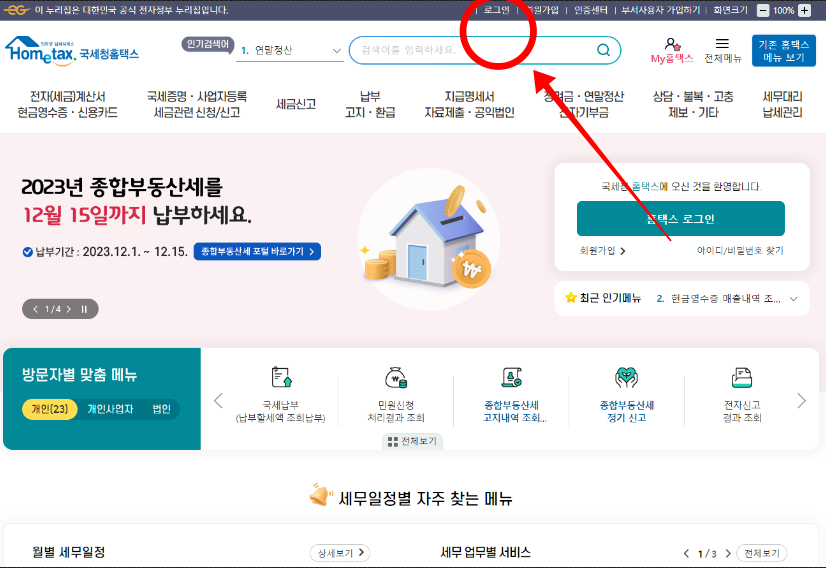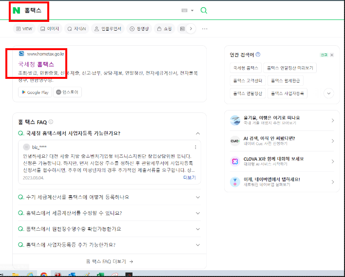 1. 네이버에 [홈택스]라고 검색 > [국세청 홈택스]에 들어갑니다.