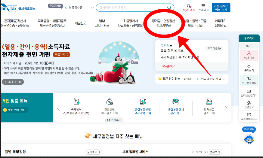 아래의 버튼을 눌러 바로 홈택스로 들어가실수 도 있습니다.