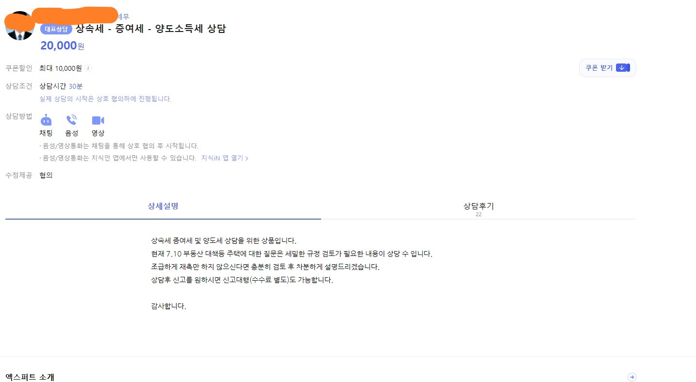 제가 선택한 세무사님은 20000원에 무려 30분간 '채팅' 혹은 '음성'으로 상담이 가능하신 분입니다. 음성의 경우 네이버 지식인 어플이 필요합니다. 우측 상단에 보면 쿠폰이 있습니다. 쿠폰의 경우 저는 5000원 과 10000원 할인 쿠폰이 있었습니다. 바로 적용 가능합니다.